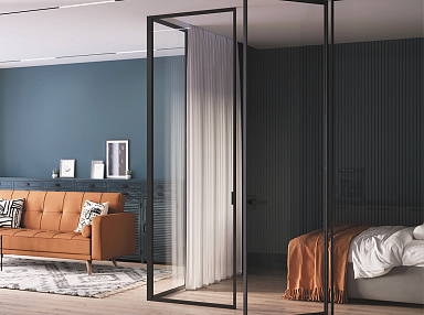 Устанавливать двери с механизмом TWICE можно в помещениях с неудобной планировкой, где стандартные распашные варианты не подходят. Рядом с дверью, которая занимает вдвое меньше места, можно поставить комод, торшер, кресло или оставить свободное пространство по своему желанию.